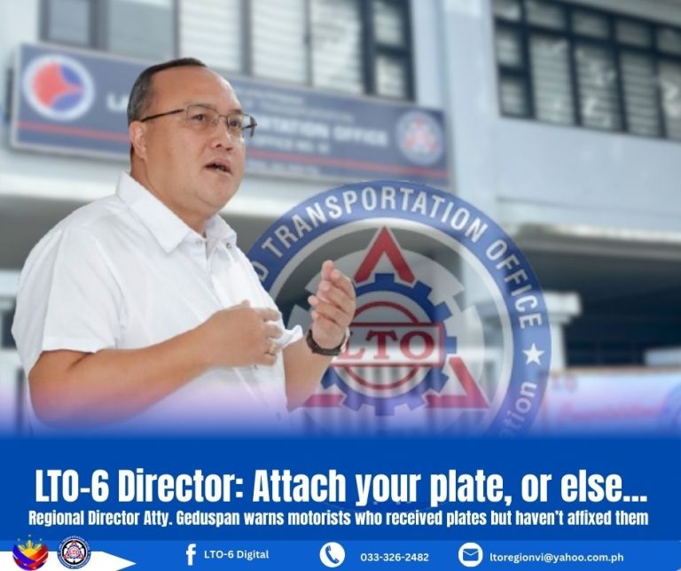 By GEROME DALIPE IV Land Transportation Office โ Region VI (LTO-6) has a simple message for motorists whoโve already received...